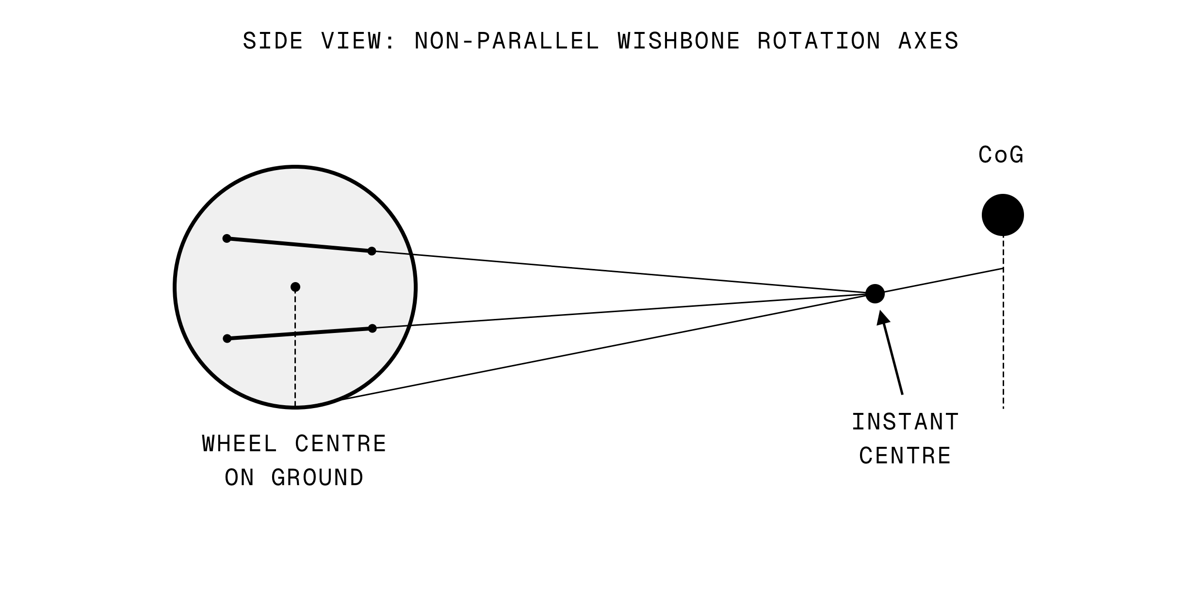 - Points $C$ and $D$ effectively form the axis about which the bottom wishbone can rotate.