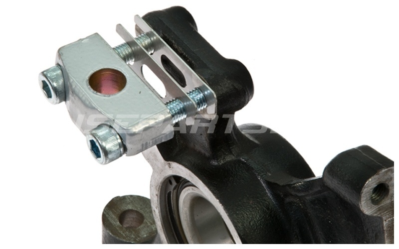 - The axle, described by points $I$ and $J$, is rigidly fixed to the upright.